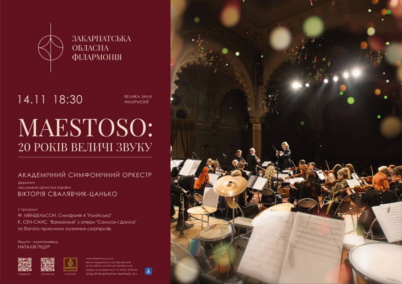 Святковий концерт Академічного симфонічного оркестру Закарпатської обласної філармонії, присвячений його 20-річчю. Закарпатська обласна філармонія, пл. Театральна, 10